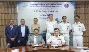 These 149-metre long, 6,670 tonne warships are largest and the most Sophisticated Guided –Missile frigates built by GRSE in its 65-year history as a Defence Public Sector Undertaking. The three ships are worth over Rs. 21,833.36 Crore and a significant portion of this value has fuelled MSME;s , start-ups, and OEMs while also contributing to employment generation, thereby helping to nourish the shipbuilding ecosystem of our Nation. This aligns closely with the Government of India’s Atmanirbhar Bharat Abhiyan, which aims to promote self-reliance by encouraging indigenous manufacturing and strengthening local supply chains.
